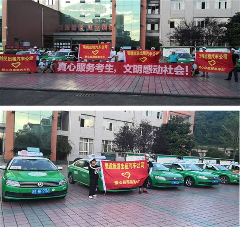 2019年高考到來之際,為大力弘揚“奉獻、友愛、互助、進步”的志愿服務精神,蜀通公司派出部分出租車、公交車免費為高考學生服務,助力雅安考生順利參加高考。