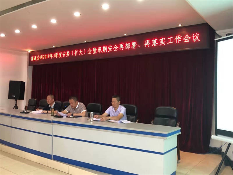 2019年7月23日,蜀通公司黨委副書記、總經(jīng)理、安委會(huì)主任余輝在公司機(jī)關(guān)會(huì)議室主持召開了2019年三季度安委(擴(kuò)大)會(huì)暨汛期安全工作再部署、再落實(shí)工作會(huì)議。公司安委會(huì)成員及各基層安全二、三責(zé)任人共計(jì)40人參加此次會(huì)議。