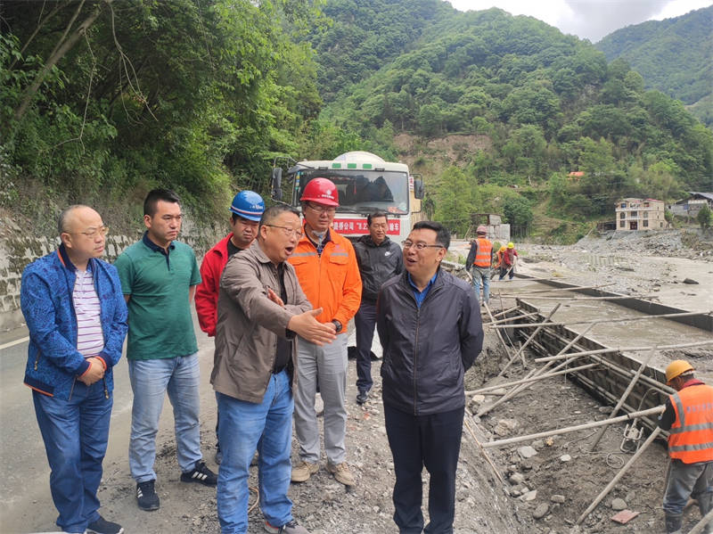 5月27日,市人大常委會副主任劉平一行到國道351線水毀工程整治項目現場調研工程進展情況。