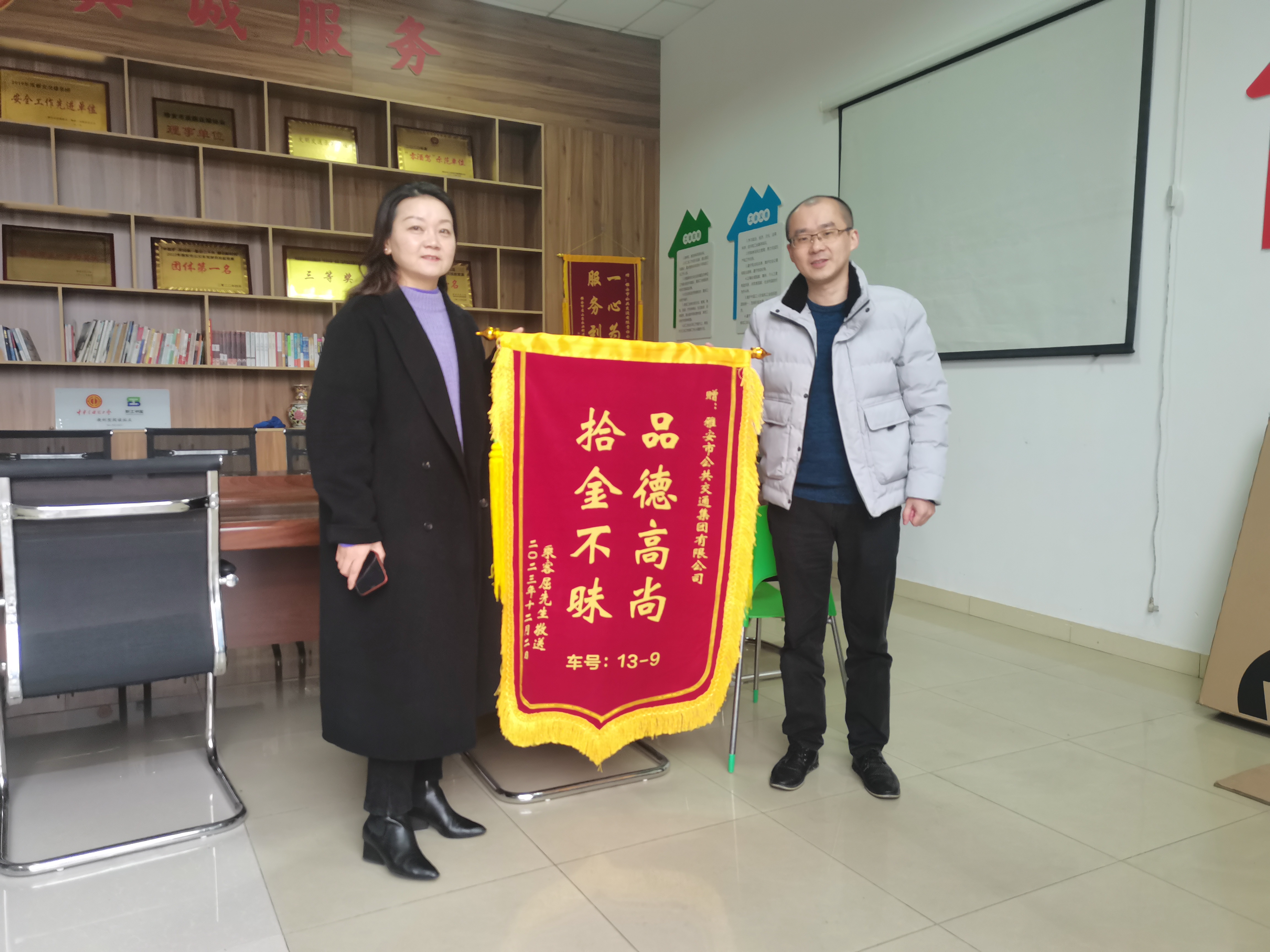 12月5日,市民屈先生帶著一面繡著“品德高尚,拾金不昧”的錦旗來(lái)到雅安公交集團(tuán),滿(mǎn)含激動(dòng)的向工作人員表達(dá)著感謝之情,一場(chǎng)平板電腦失而復(fù)得的故事圓滿(mǎn)劃上句號(hào)。