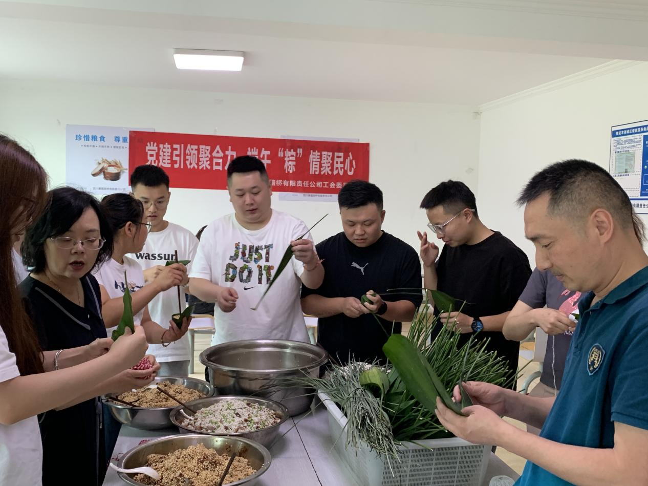 在端午節(jié)即將來臨之際,為大力弘揚中華民族精神,傳承民族優(yōu)良傳統(tǒng),路橋公司黨支部、工會組織各分公司、項目部分片區(qū)開展“黨建引領(lǐng)聚合力 端午“粽”情聚民心”包粽子、做香包活動,積極推進黨建與生產(chǎn)經(jīng)營深度融合,努力把生產(chǎn)經(jīng)營工作的重難點作為黨建工作的著力點、突破點,切實做到哪里有急難險重的任務,哪里就有黨組織攻堅克難,就有黨員沖鋒在前,在沖刺完成年度目標任務的關(guān)鍵時期,充分展示了路橋公司積極干事的精神風貌,實現(xiàn)了“凝聚路橋員工之心,銳意進取全面沖刺”的目的。