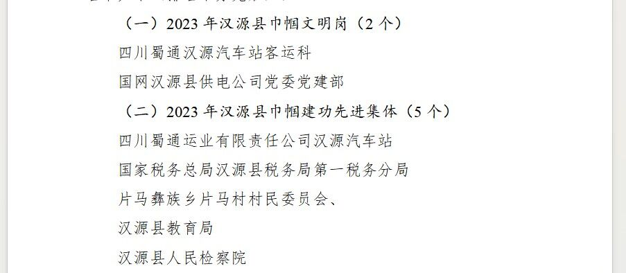 喜報(bào)!雅安交建集團(tuán)蜀通漢源汽車站獲 “2023年漢源縣巾幗建工先進(jìn)集體
