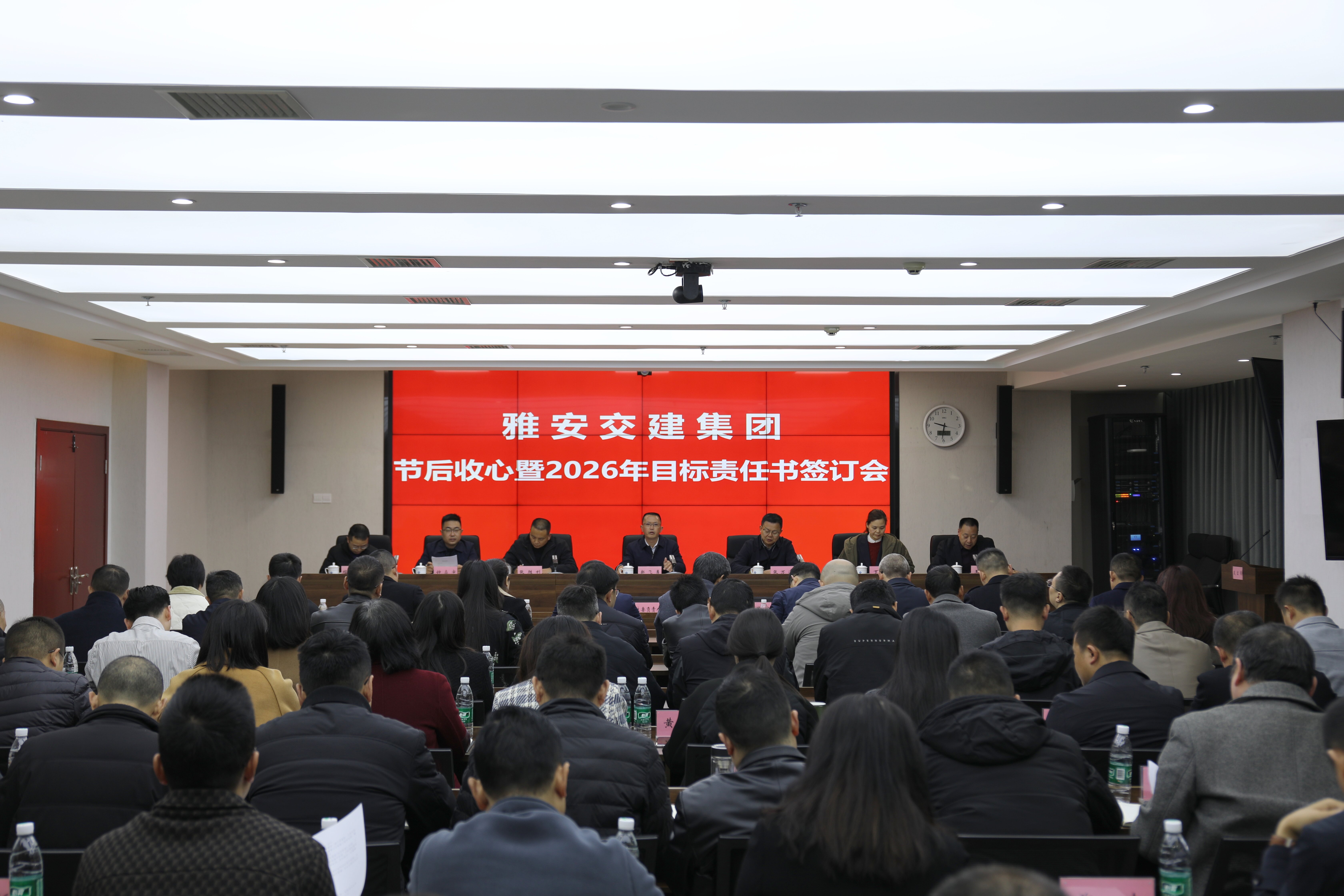 人勤春來早,奮進正當(dāng)時。2月24日,雅安交建集團召開節(jié)后收心暨2026年目標(biāo)責(zé)任書簽訂會,集團黨委副書記、總經(jīng)理趙飛勇出席會議并講話,集團領(lǐng)導(dǎo)班子、中層干部及各子公司領(lǐng)導(dǎo)班子參加會議。