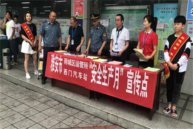 6月14日,蜀通公司雅安西門汽車站、雅安汽車站分別在站前廣場舉行了“防風險、除隱患,遏事故”為主題的安全宣傳咨詢活動。西門車站精心準備了宣傳片12個、專欄2個、海報7幅、LED橫幅12個等安全宣傳資料,現(xiàn)場發(fā)放各種安全宣傳資料1000余份;雅安汽車客運站設置安全專欄9個、LED標語12幅、宣傳視頻10個、發(fā)放宣傳資料800余份。宣傳內(nèi)容涵蓋了安全生產(chǎn)法律法規(guī)、道路旅客運輸安全知識、公民預防恐怖活動行為指引、客運行業(yè)打非治違、客運班線實名制售檢票、安全帶的重要性、乘車安全常識、公共場所如何預防踩踏事故等安全知識和技能以及“三不進站六不出站”管理規(guī)定及蜀通官方微信購票平臺等。