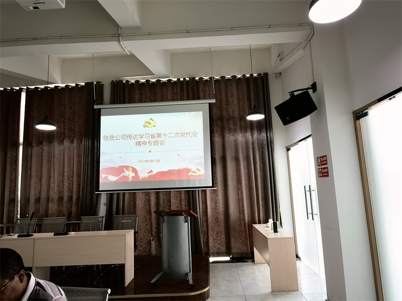 6月14日,佳岳公司3樓會議室召開省第十二次黨代會精神專題學習會,公司班子成員、中層干部、黨員及入黨積極分子參加。