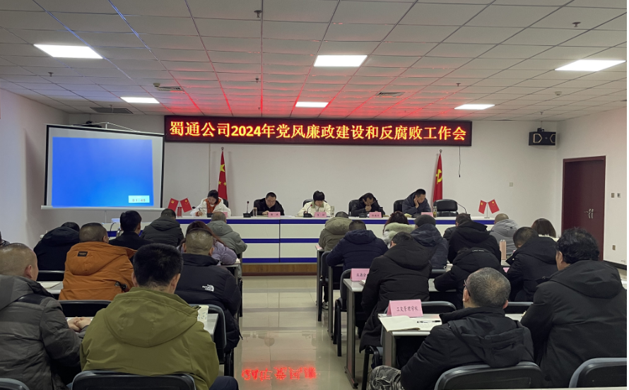 為扎實推進交建集團蜀通公司黨風廉政建設,強化廣大黨員干部廉潔自律意識,增強拒腐防變能力,2月28日,交建集團蜀通公司黨總支組織召開2024年黨風廉政設和反腐敗工作會。公司領導、中層干部參加了會議。