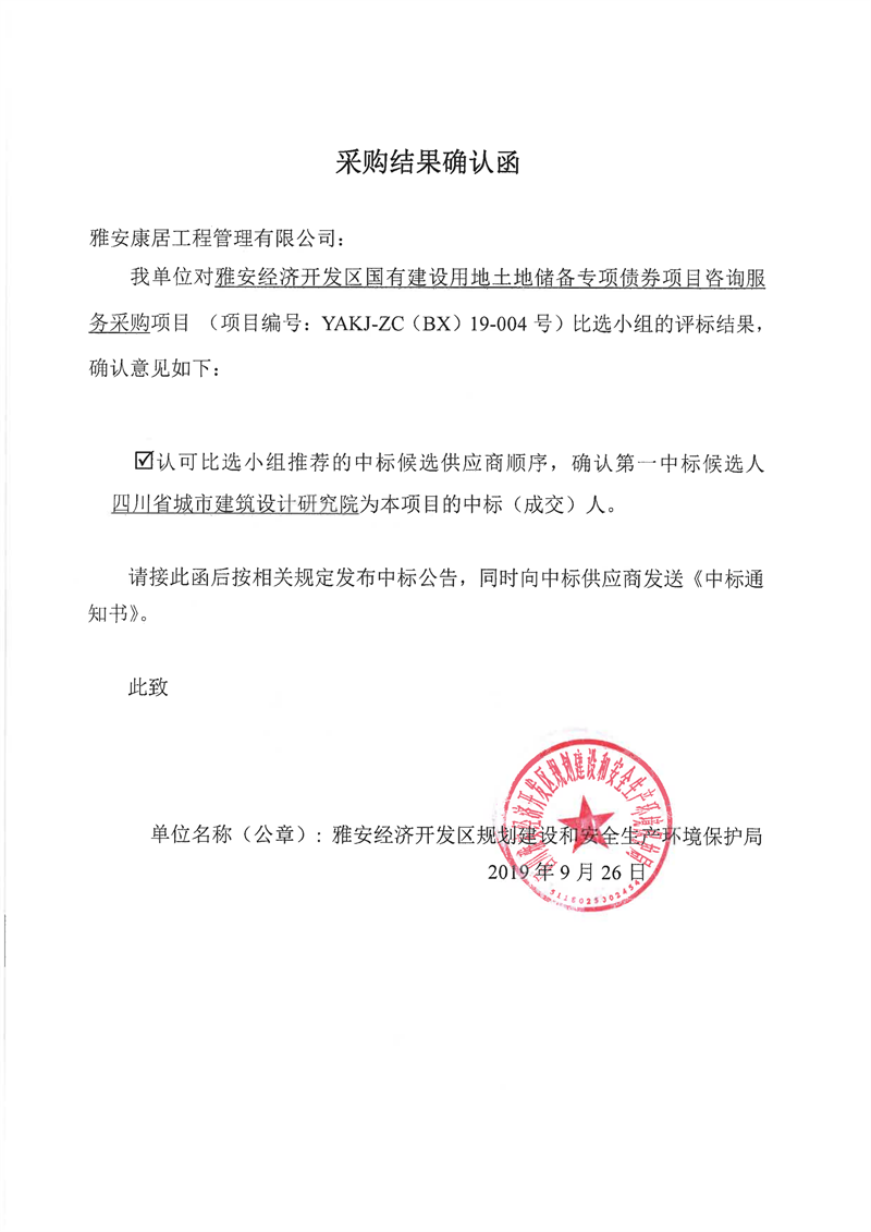 雅安經(jīng)濟開發(fā)區(qū)國有建設用地土地儲備專項債券項目咨詢服務采購比選結(jié)果公示