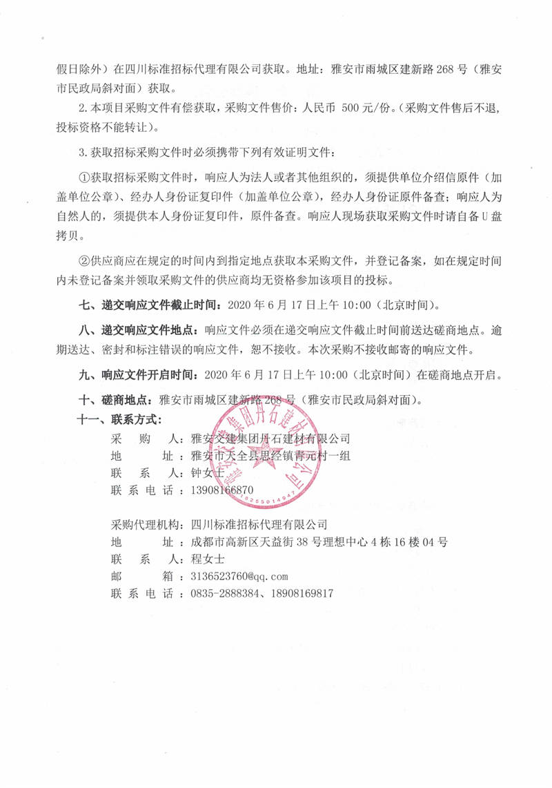 雅安交建集團(tuán)丹石建材有限公司2018—2020年度項(xiàng)目工程造價(jià)咨詢服務(wù)項(xiàng)目競(jìng)爭(zhēng)性磋商公告