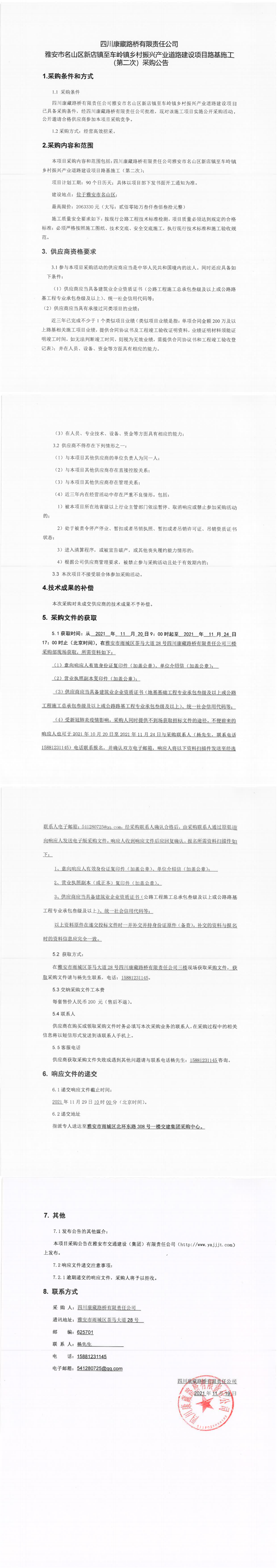 四川康藏路橋有限責(zé)任公司雅安市名山區(qū)新店鎮(zhèn)至車嶺鎮(zhèn)鄉(xiāng)村振興產(chǎn)業(yè)道路建設(shè)項(xiàng)目路基施工(第二次)采購公告