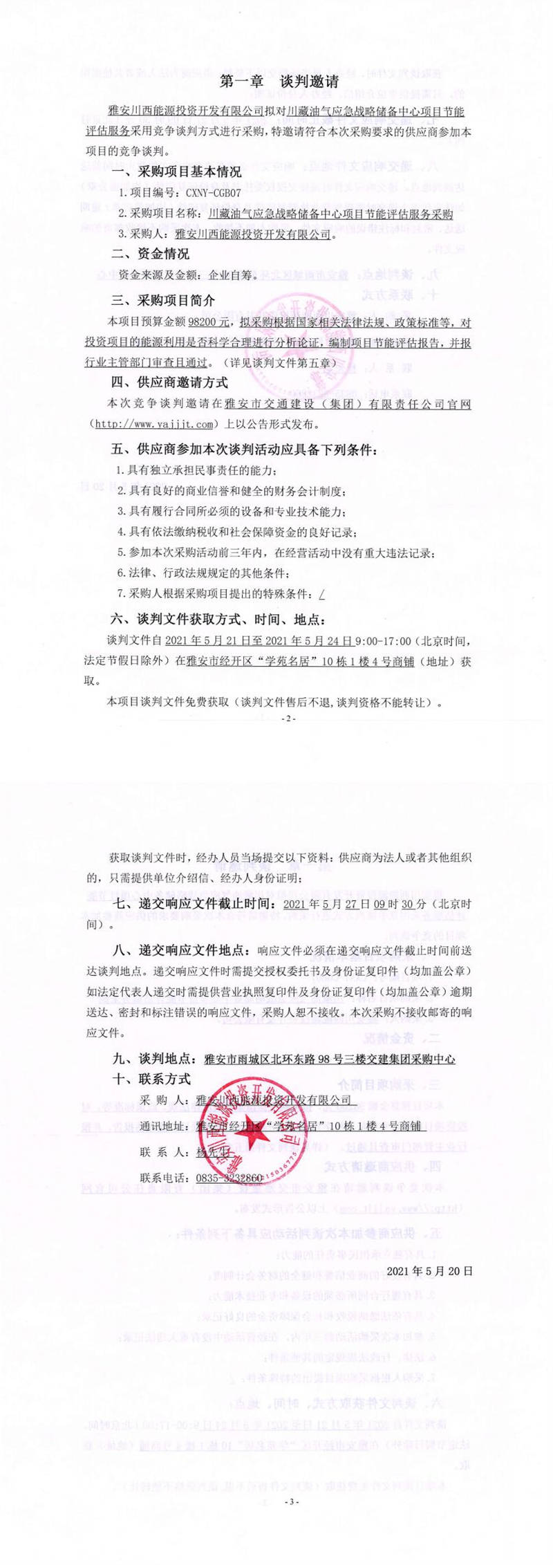 雅安川西能源投資開發(fā)有限公司川藏油氣應(yīng)急戰(zhàn)略儲備中心項目節(jié)能評估服務(wù)采購競爭談判公告