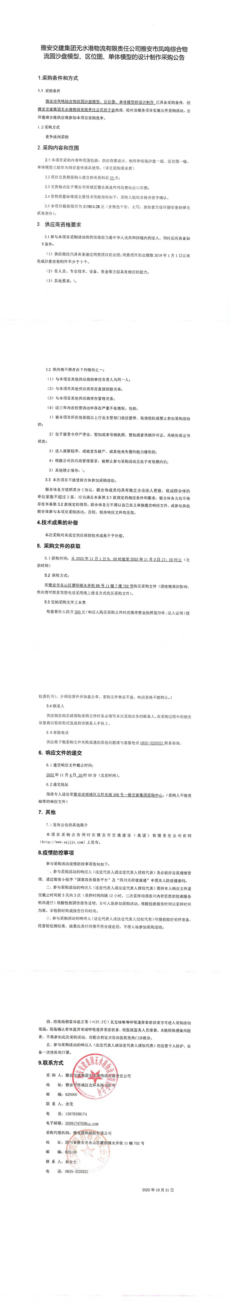 雅安交建集團(tuán)無水港物流有限責(zé)任公司雅安市鳳鳴綜合物流園沙盤模型、區(qū)位圖、單體模型的設(shè)計(jì)制作采購公告