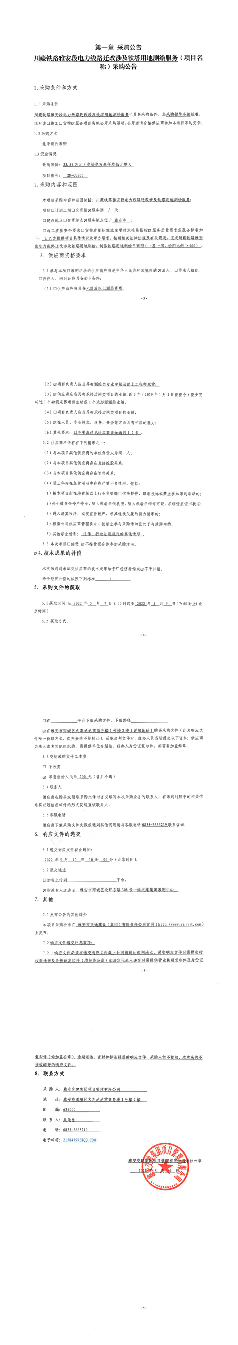 雅安交建集團項目管理有限公司川藏鐵路雅安段電力線路遷改涉及鐵塔用地測繪服務(wù)采購公告