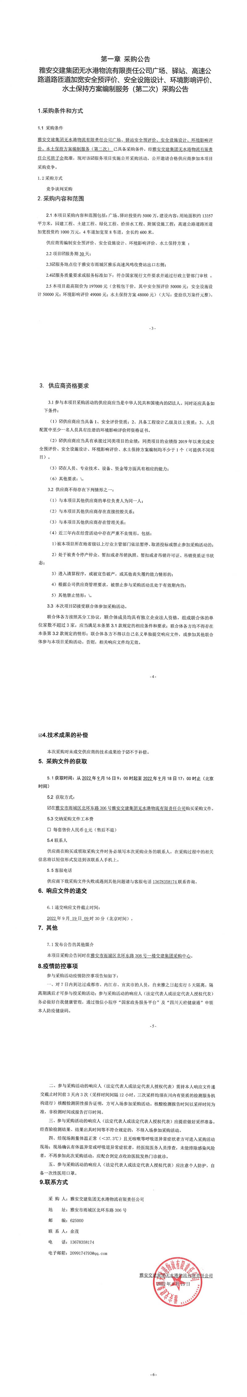 雅安交建集團無水港物流有限責任公司廣場、驛站、高速公路道路匝道加寬安全預(yù)評價、安全設(shè)施設(shè)計、環(huán)境影響評價、水土保持方案編制服務(wù)(第二次)采購公告