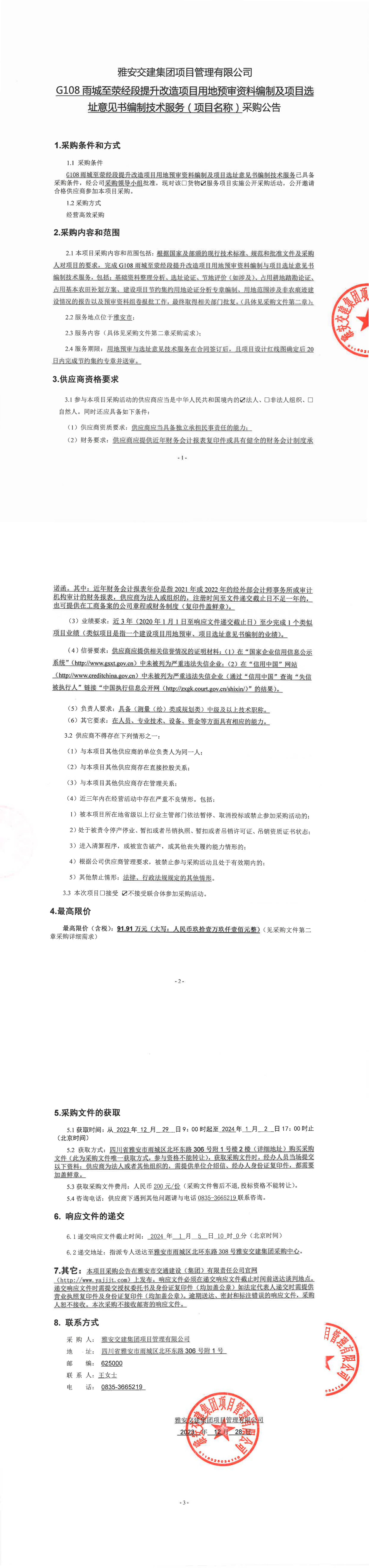 雅安交建集團(tuán)項(xiàng)目管理有限公司G108雨城至滎經(jīng)段提升改造項(xiàng)目用地預(yù)審資料編制及項(xiàng)目選址意見書編制技術(shù)服務(wù)(項(xiàng)目名稱)采購公告