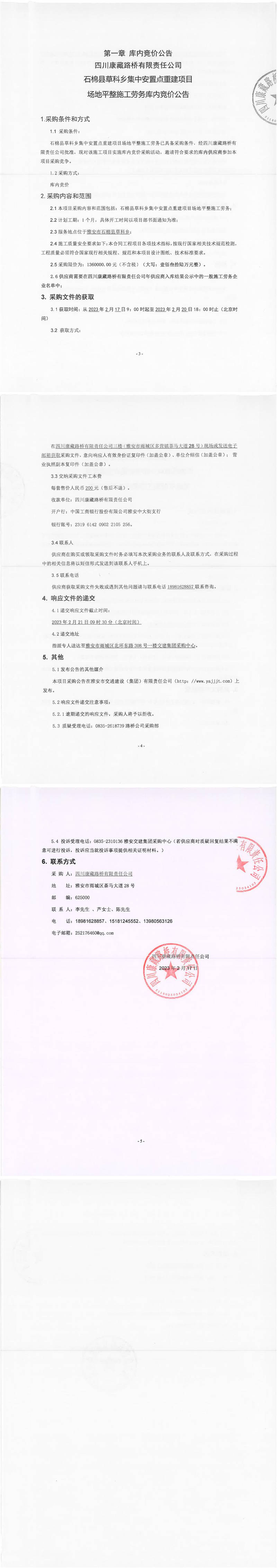 四川康藏路橋有限責(zé)任公司石棉草科鄉(xiāng)集中安置點(diǎn)重建項(xiàng)目場(chǎng)地平整施工勞務(wù)庫內(nèi)競(jìng)價(jià)公告