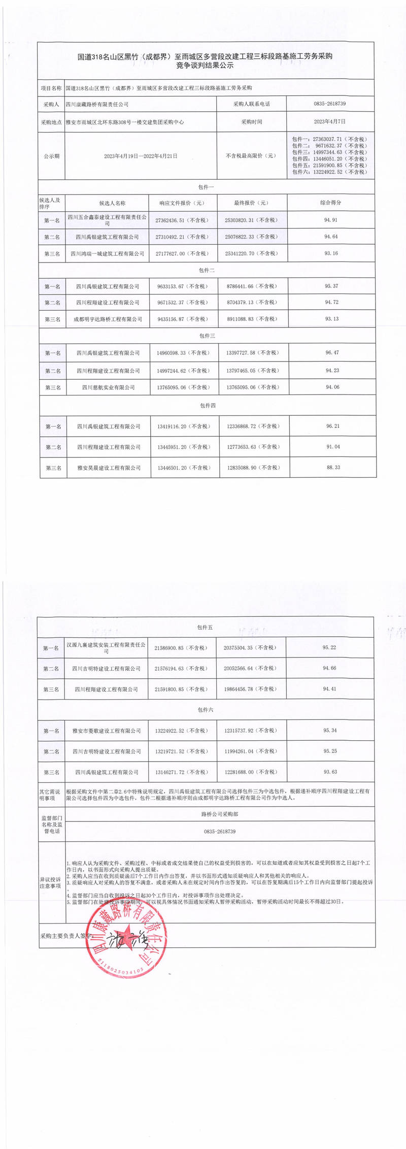 四川康藏路橋有限責(zé)任公司國(guó)道318名山區(qū)黑竹(成都界)至雨城區(qū)多營(yíng)段改建工程三標(biāo)段路基施工勞務(wù)采購(gòu)競(jìng)爭(zhēng)談判結(jié)果公示