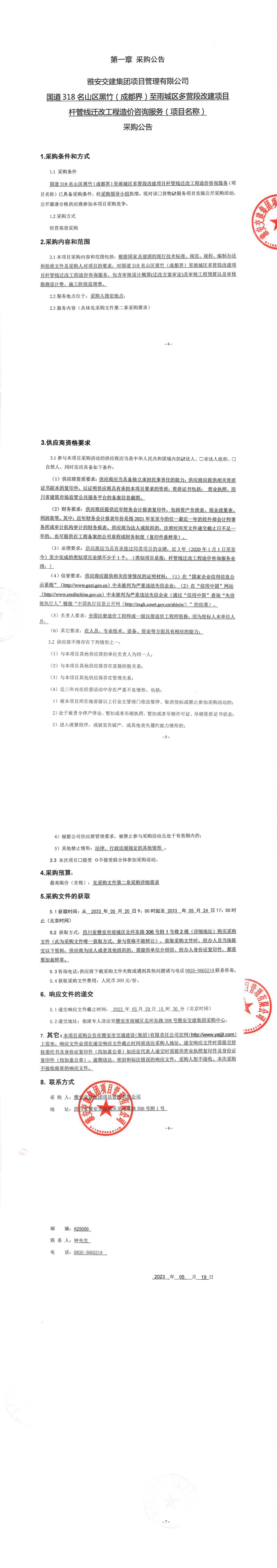 雅安交建集團項目管理有限公司國道318名山區(qū)黑竹(成都界)至雨城區(qū)多營段改建項目桿管線遷改工程造價咨詢服務(wù)(項目名稱)采購公告