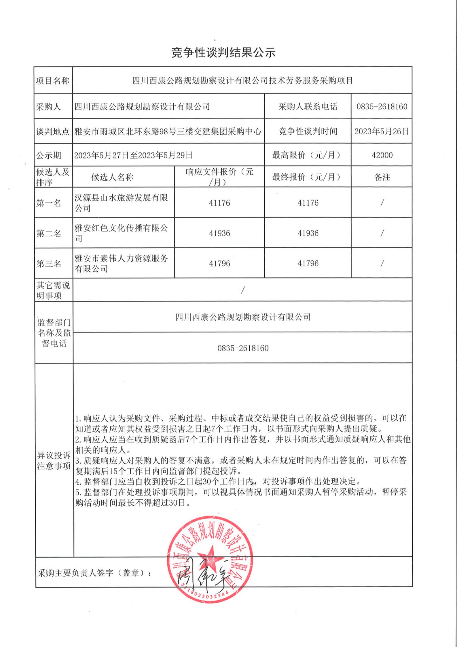 四川西康公路規(guī)劃勘察設計有限公司技術(shù)勞務服務采購結(jié)果公示