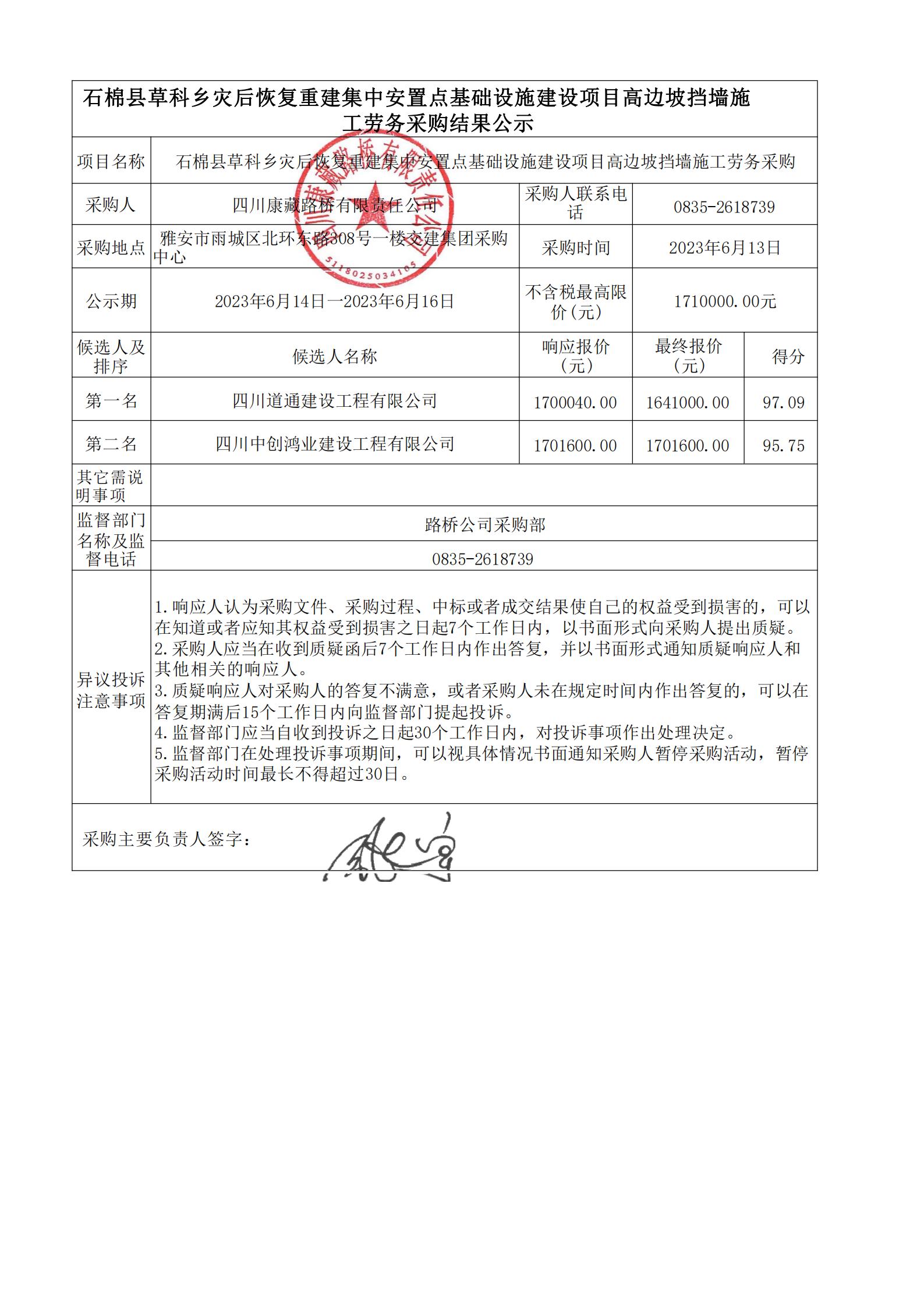 四川康藏路橋有限責(zé)任公司石棉縣草科鄉(xiāng)災(zāi)后恢復(fù)重建集中安置點(diǎn)建設(shè)項(xiàng)目農(nóng)家村村委會(huì)邊坡防護(hù)工程施工勞務(wù)采購(第三次)結(jié)果公示