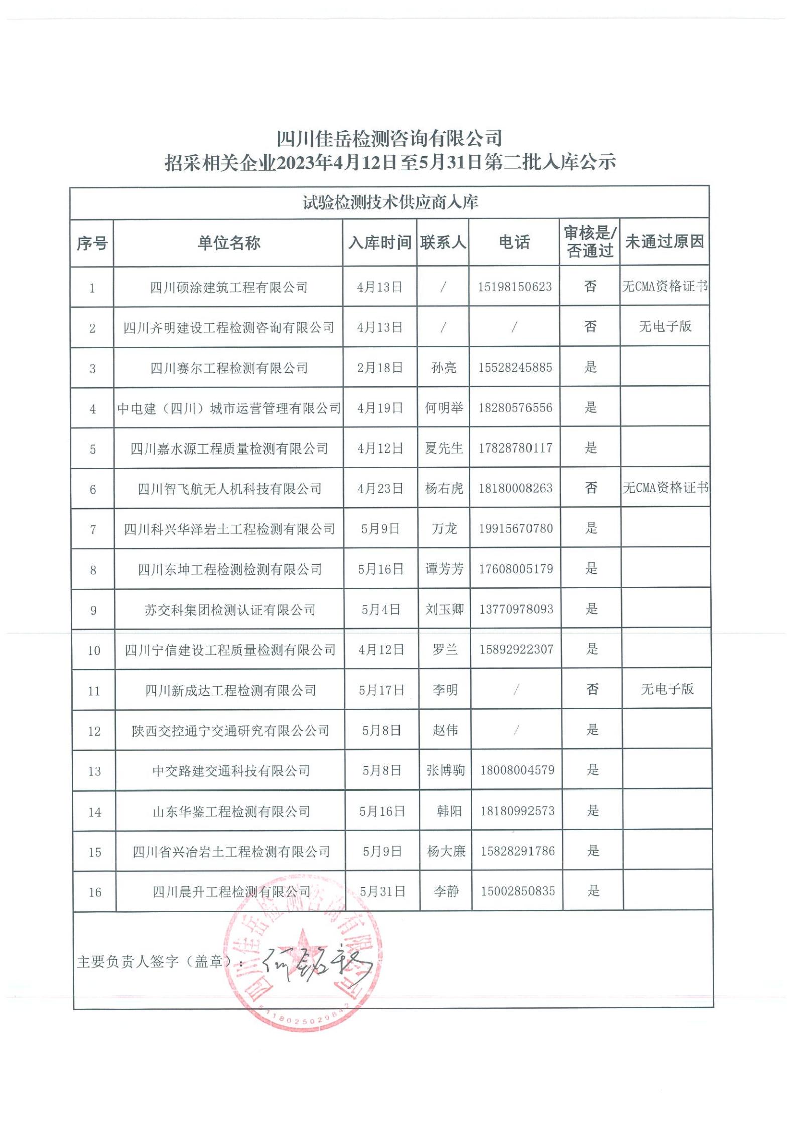 四川佳岳檢測咨詢有限公司(試驗檢測技術供應商庫)2023年4月12日至5月31日第二批入庫結果公示
