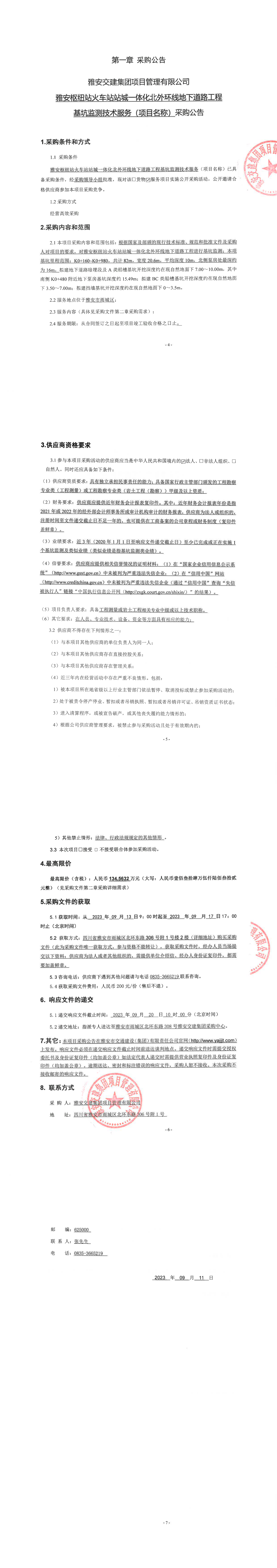 雅安交建集團(tuán)項(xiàng)目管理有限公司雅安樞紐站火車(chē)站站城一體化北外環(huán)線地下道路工程基坑監(jiān)測(cè)技術(shù)服務(wù)(項(xiàng)目名稱(chēng))采購(gòu)公告