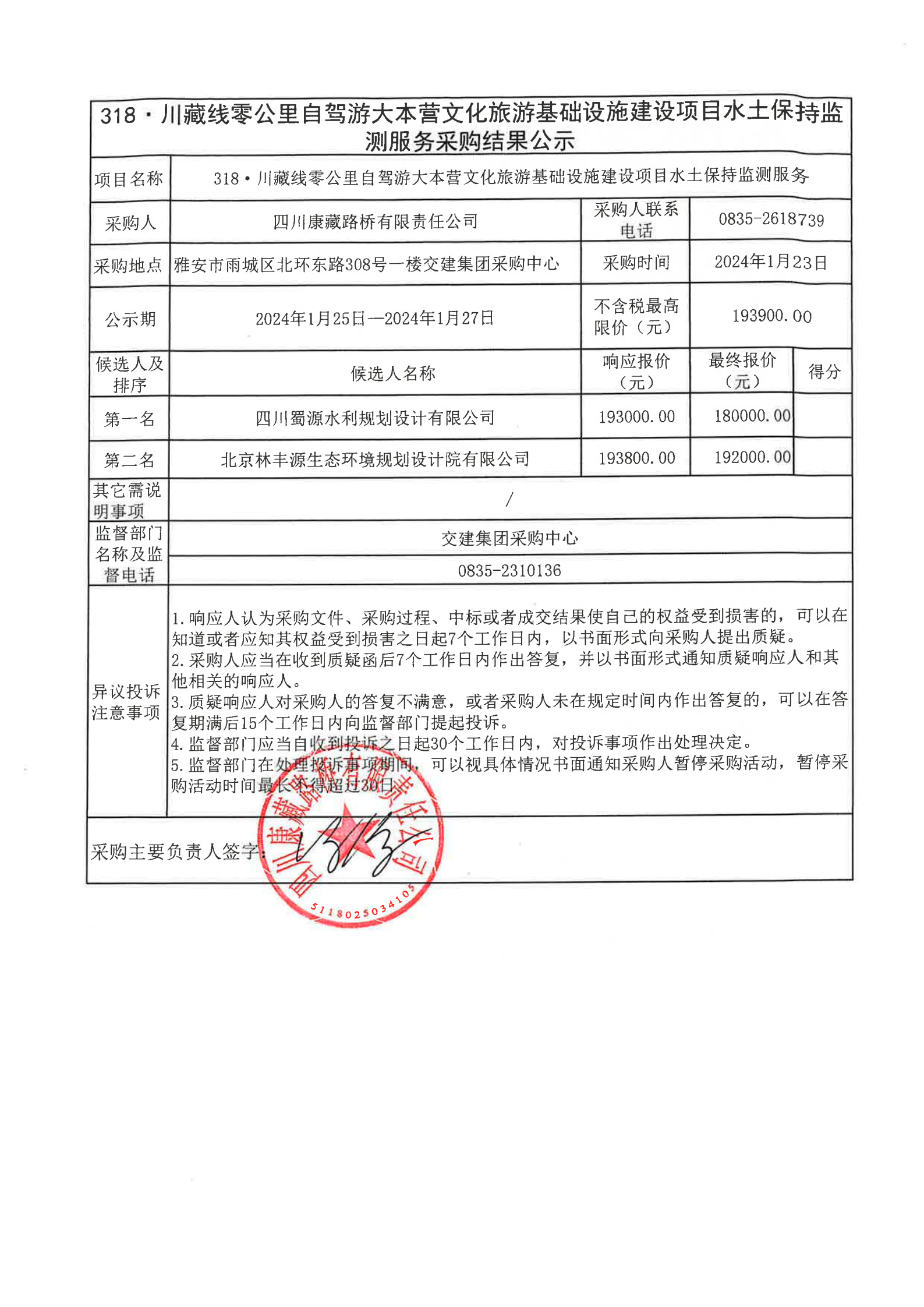 四川康藏路橋有限責(zé)任公司318·川藏線零公里自駕游大本營文化旅游基礎(chǔ)設(shè)施建設(shè)項(xiàng)目水土保持監(jiān)測服務(wù)采購結(jié)果公示