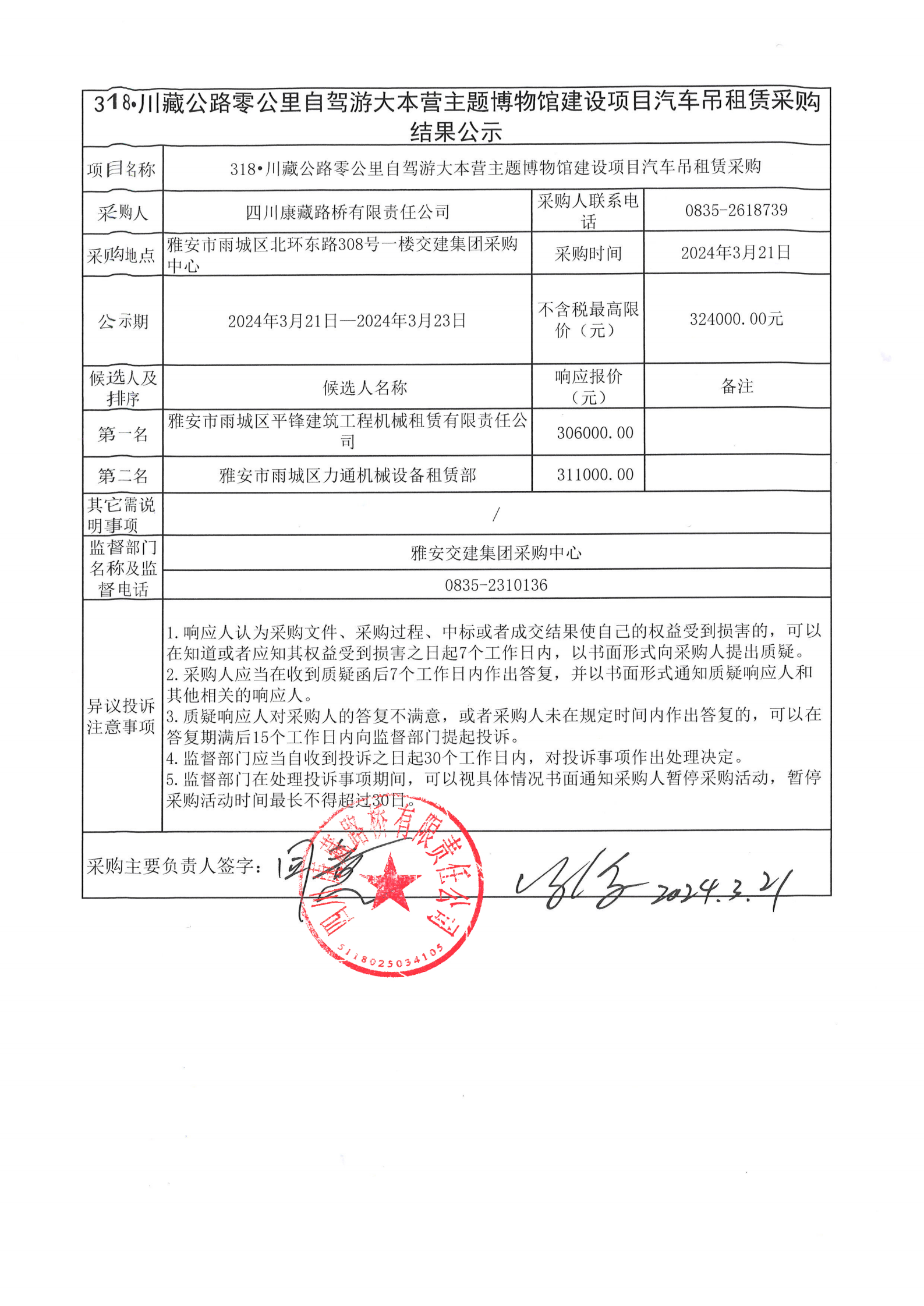 四川康藏路橋有限責任公司318·川藏公路零公里自駕游大本營主題博物館建設項目汽車吊租賃采購結果公示