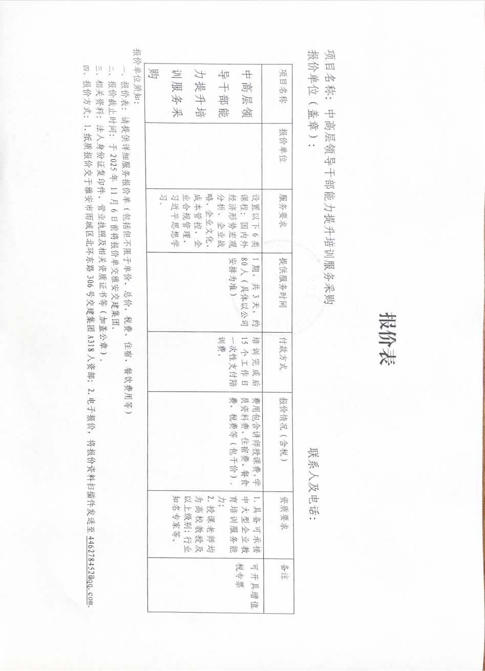 中高層領(lǐng)導(dǎo)干部能力提升培訓(xùn)服務(wù)采購詢價邀請