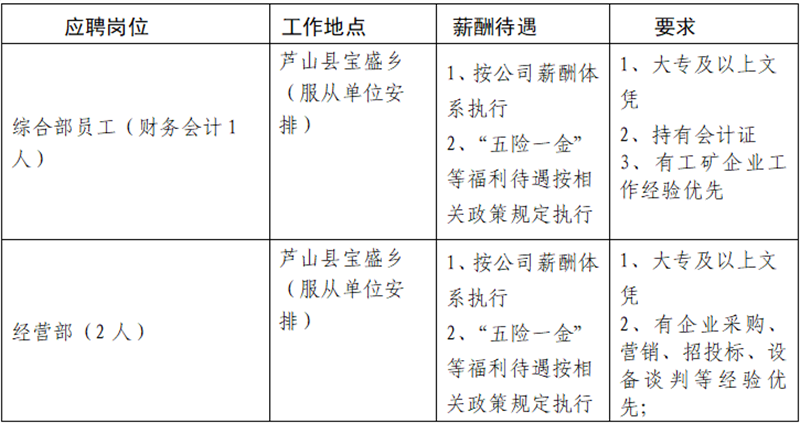 雅安交建集團云石建材有限公司關(guān)于招聘工作人員的公告(第二期)