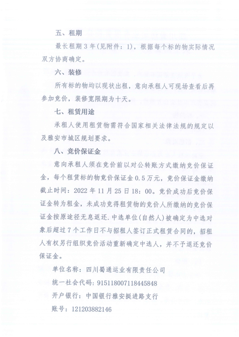 蜀通公司閑置資產(chǎn)招租公告
