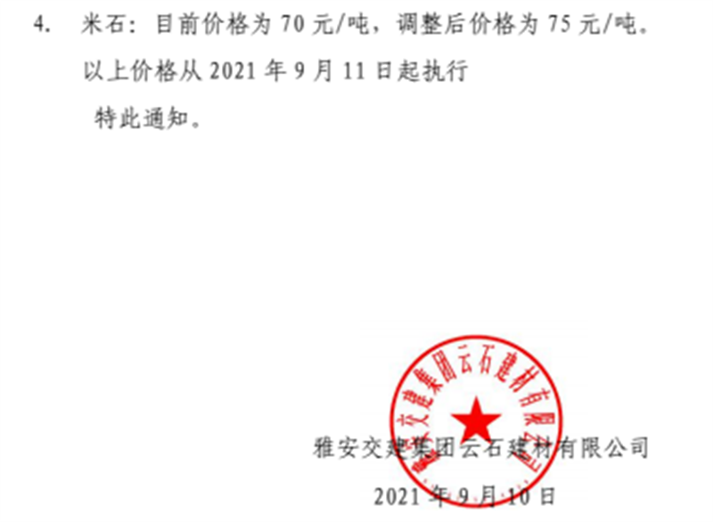 ÑŰ²½»½¨¼¯ˆF(tu¨¢n)ÔÆÊ¯¹«Ë¾êP(gu¨¡n)ÓÚÕ{(di¨¤o)Õû³ÉÆ·ÁÏäNÊÛƒr(ji¨¤)¸ñµÄ֪ͨ£¨2021.11.4£©