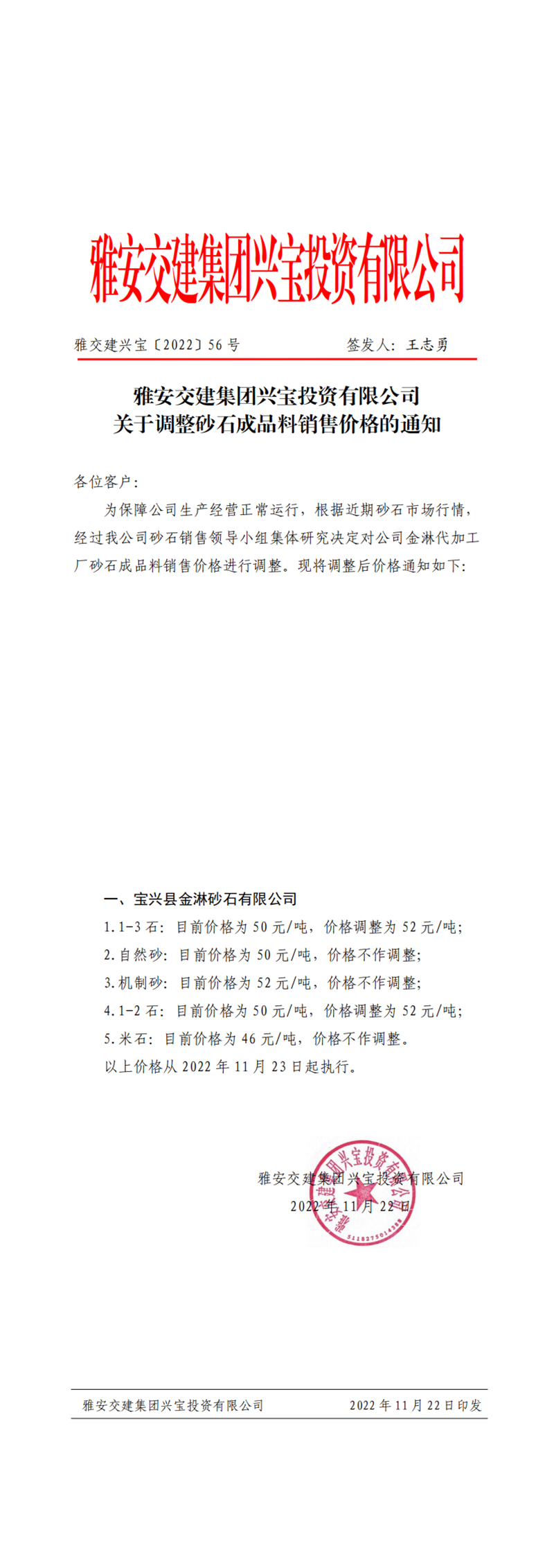 ÑŽ»½¨ÅdŒš¡²2022¡³56Ì– êP(gu¨¡n)ÓÚÕ{(di¨¤o)Õûɰʯ³ÉÆ·ÁÏäNÊÛƒr¸ñµÄ֪ͨ-11.22
